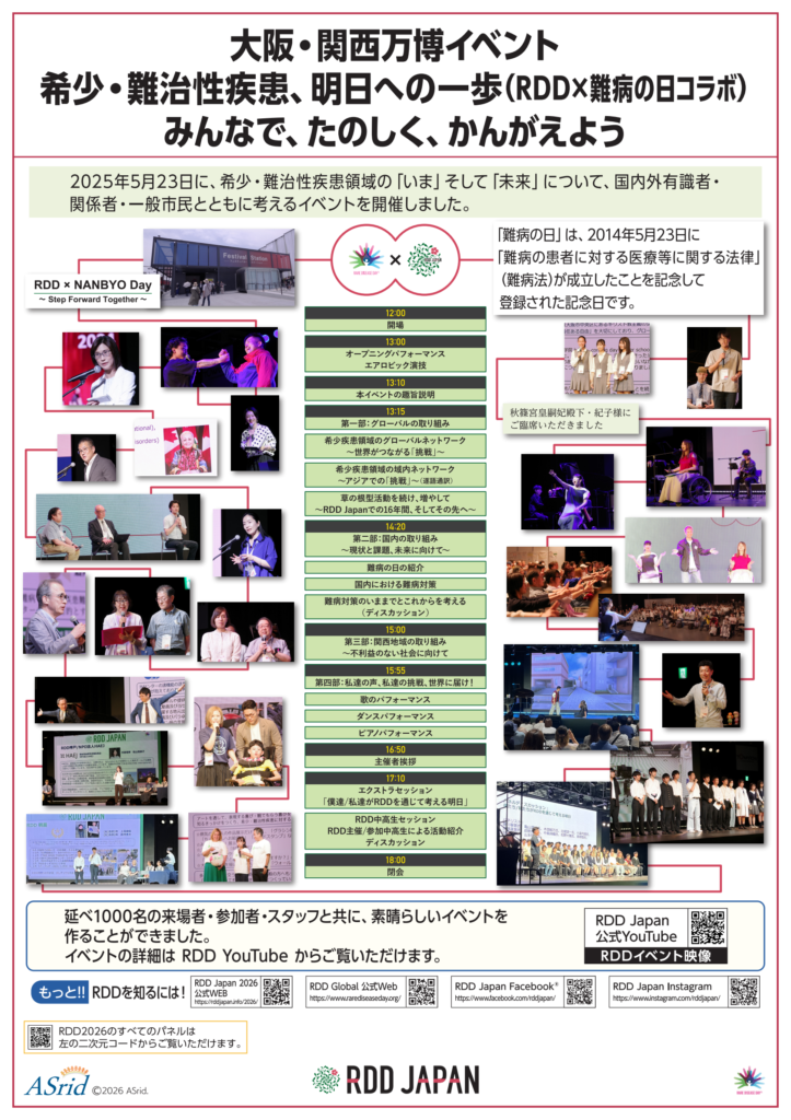 No2 大阪・関西万博イベント 希少・難治性疾患、明日への一歩(RDDx難病の日コラボ)みんなで、たのしく、かんがえよう